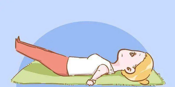 仰躺下来,四肢伸直。手掌要贴紧身子。