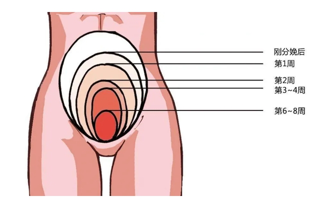 子宫内的血液不断被排出体外,即为恶露。子宫经由不断且强力的收缩,将血管的开口压往,这样就让血块形成而停止出血。子宫再进一步挤压,将血块不断排出,子宫体积就会慢慢缩小。